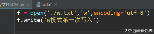 第一次写入内容,w.txt文件不存在,自动帮你创建w.txt。