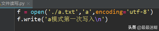 写文件和读文件是一样的,唯一区别是调用open()函数时,文件打开模式把'r'换成'w'或者'a',表示写文本文件。