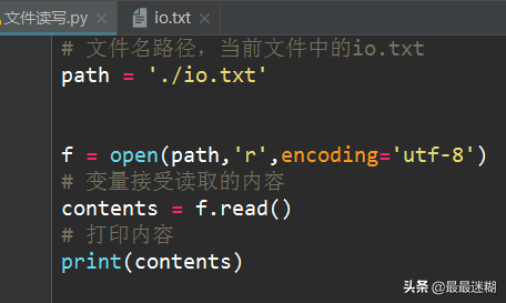 还有一个问题如果内容中有中文用f = open(path,'r')去读文件又会报编码错误。所以正确的方法传三个参数最好:传入文件名、打开模式和编码参数。