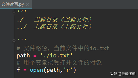 在Python中,文件读写是通过open()函数打开的文件对象完成的。使用with语句操作文件IO是个好习惯。