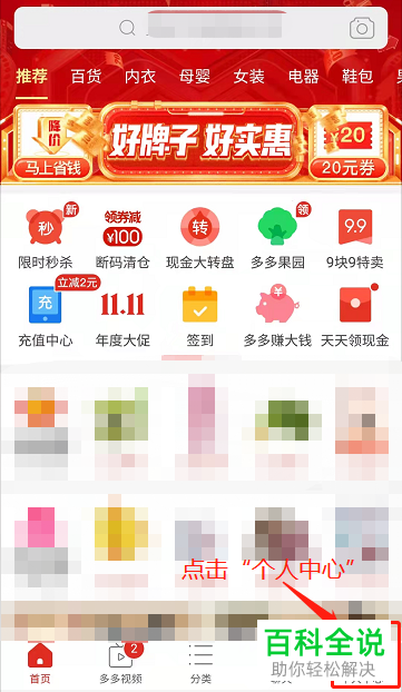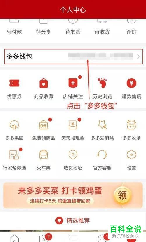 2. 第二步在【个人中心】页面中,根据下图箭头所指,点击【多多钱包】选项。