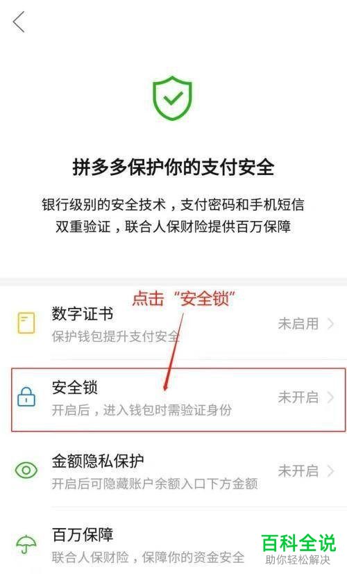 4. 第四步在跳转的页面中,根据下图箭头所指,点击【安全锁】选项。