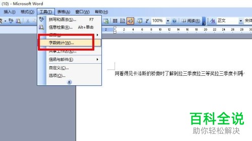 4. 第四步在弹出的菜单栏中,根据下图所示,点击【字数统计】选项。