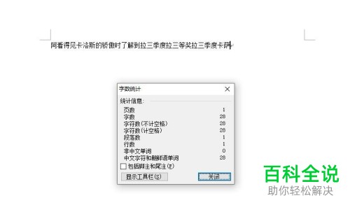 5. 第五步在弹出的【字数统计】窗口中,根据下图所示,即可查看详细的统计信息。