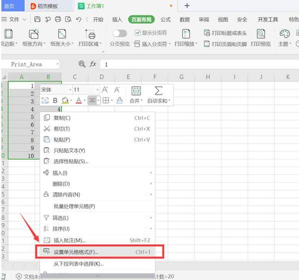 随后打开excel表格,选中需要打印的内容,右键点击,选择“设置单元格格式”: