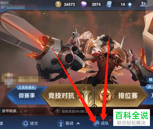 1. 首先第一步先打开手机中的王者荣耀,接着根据下图箭头所指,点击【战队】选项。