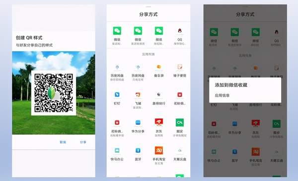 接下来点“创建”就行,那么会得到如下样式的二维码。点击“分享”就可以添加到微信、QQ、各种网盘等,但就是不能直接保存到本地,因此想保存在本地则需要再麻烦一下,不过我建议好好利用网盘,毕竟5G时代的云存储可能是主流。