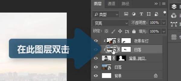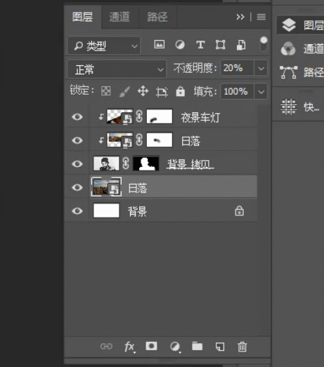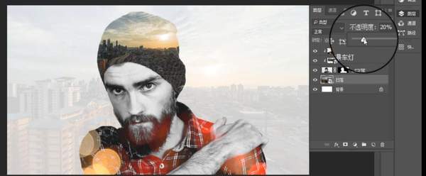 第八步,置入日落文件作为背景,不透明度设置为20