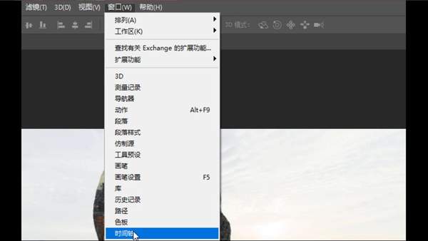 第九步,选择菜单栏窗口,时间轴