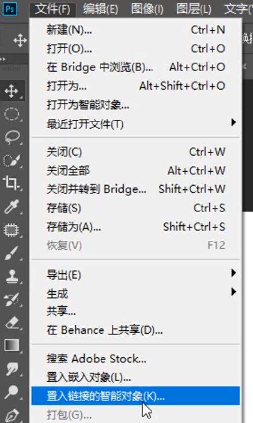第五步,选择文件,置入链接的智能对象,置入日落文件