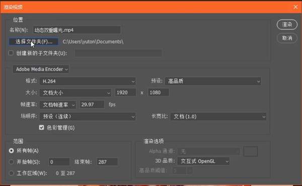 参数设置如图,最后选择文件夹,单击渲染。