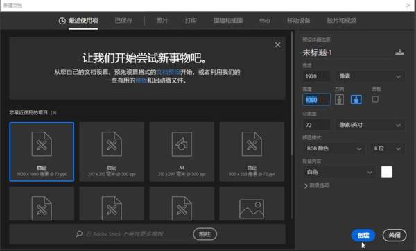 第三步,新建文档1920*1080