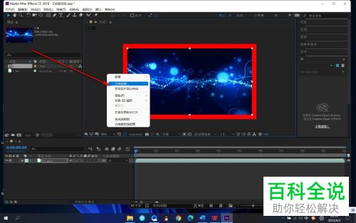 3. 第三步如果需要修改背景色,先右键单击视频窗口,接着在弹出的菜单栏中根据下图箭头所指,点击【合成设置】选项。