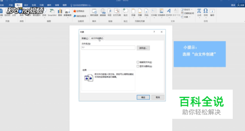 在对象的下拉选项中点击“对象”,选择“由文件创建”。