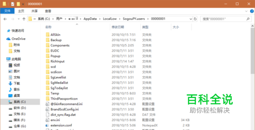 打开文件资源管理,在地址栏中粘贴如下鱼尾括号内的内容并回车: 【%AppData%\..\LocalLow\SogouPY.users\00000001】 注意路径当中有两个点,如果你手动去找,它应该在C:\Users\【你的名字】\AppData\LocalLow\SogouPY.users\00000001