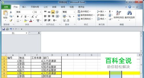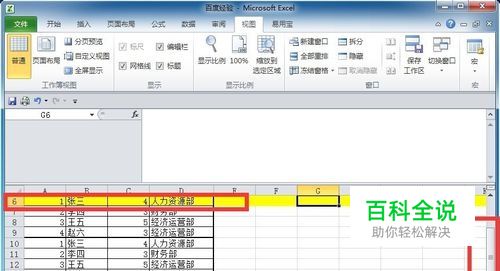 拉动右边的下拉条,使得黄色行当前处于表格的第一行