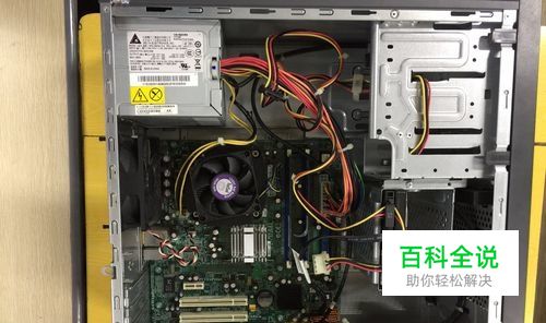 用十字螺丝刀将将台式电脑主机后盖打开, 然后将电脑平放到桌面上。