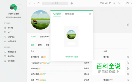 首先下载并安装好QQ音乐,然后点击登录,如果有帐号就直接登录,如果没有就注册后再登录,也可以直接用已有的QQ或微信帐号和密码登录。