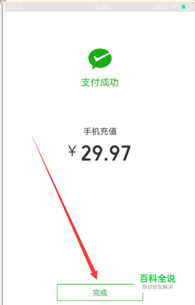 手机提示,充值将通过公众号告诉你,点击完成选项。