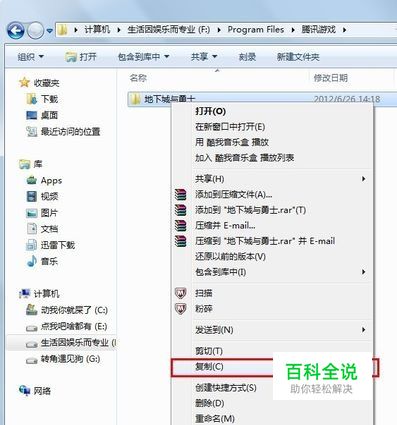 打开地下城与勇士的安装根目录,然后选择“复制”: