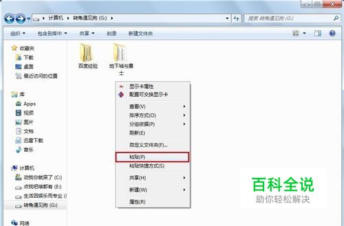 到另一个分区中右击空白处选择“粘贴”: