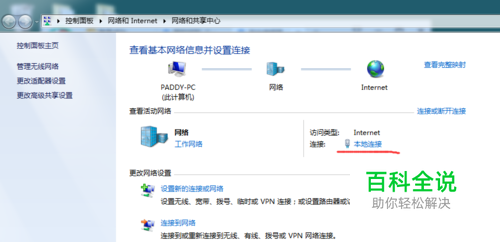 在“网络和共享中心”界面的查看网络一栏之下,点击“ 本地连接”;