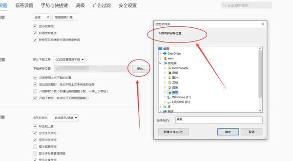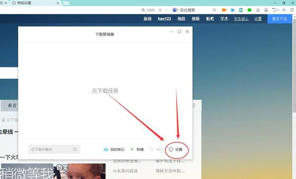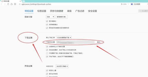 点击【设置】按钮后,网页会自动弹出新界面,并且自动跳转到【下载设置】的位置;后边的文件夹路径就是下载文件的地址;