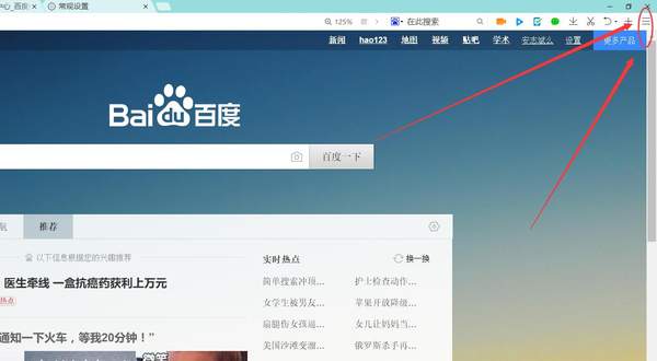 打开网页,在网页的右上角有个像【三】的符号,点击进去;这个是网页设置按钮。