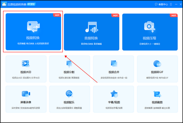 一、想要进行视频格式转换,就需要在【视频转换】功能页进行操作。点击打开“迅捷视频转换器”中的【视频转换】页面。