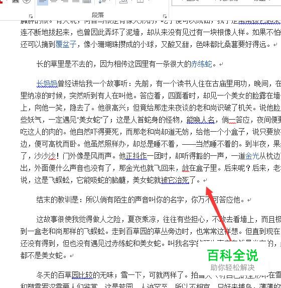 如图所示是一篇很长的文章,假设我们读到了箭头所指处的内容。
