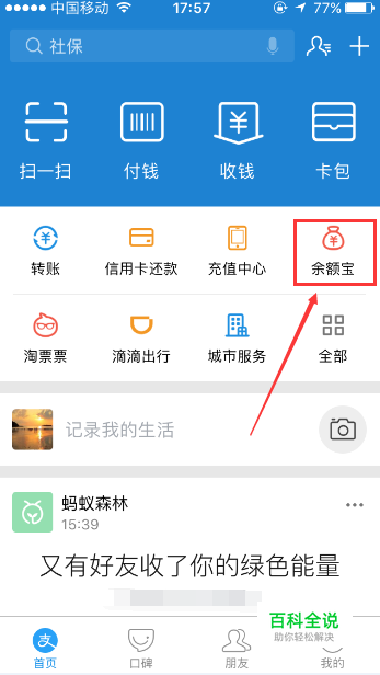 成功登录支付宝账号后,然后在支付宝首页我们点击“余额宝”图标。