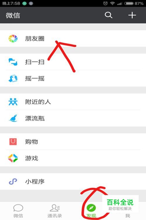 首先我们打开微信,点击“发现——朋友圈”