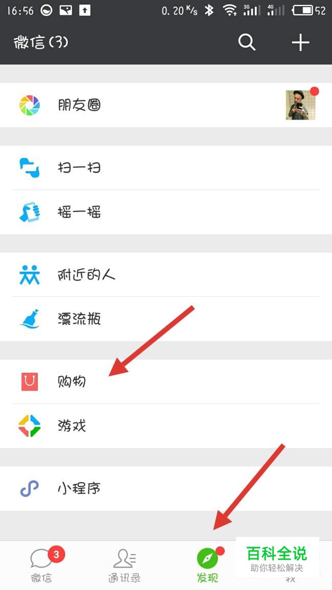 打开手机微信,点击发现“购物”。