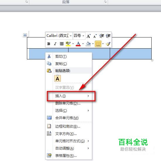 选中表格的其中一行,然后单击右键,选择“插入”。