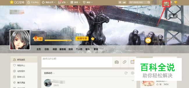 进入QQ空间后,在界面的右上角小头像处,有一个“退出”按钮,如图所示