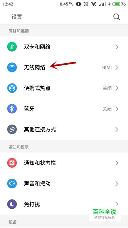 计入设置后,选择“无线网络”