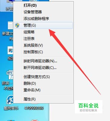 首先用鼠标右键点击电脑桌面的“计算机”,在出现的选项点击管理