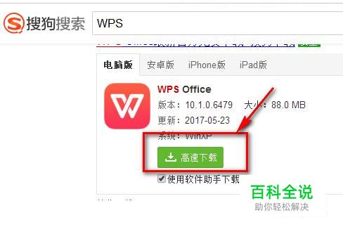 打开浏览器,然后搜狗搜索WPS,把WPS下载到电脑。