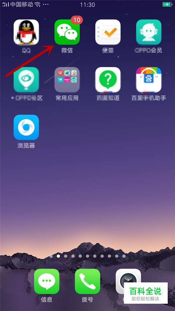 首先我们需要打开手机,进入到手机桌面,找到微信APP,手指点击登陆微信,进入到微信的主界面,如图所示。