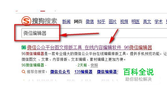 首先,使用搜狗搜索“微信编辑器”,然后点击第一个链接。