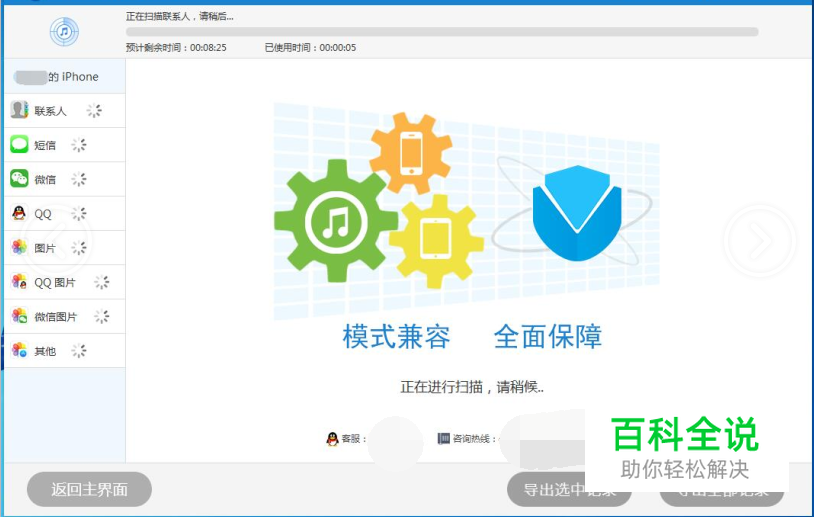 扫描完成后,我们就可以看到软件左侧显示了联系人、短信、微信、QQ等,