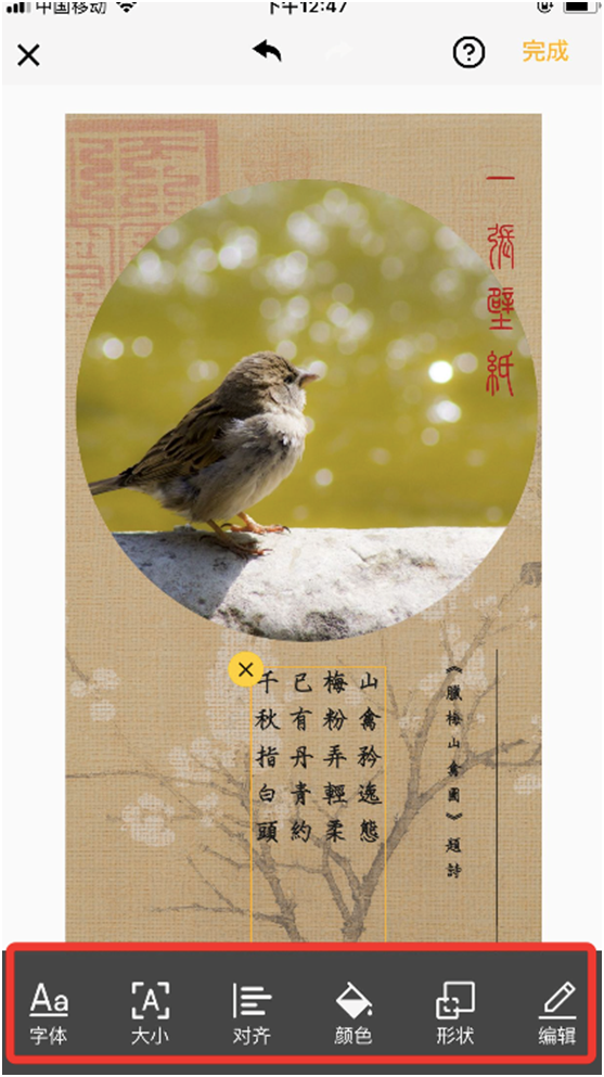 2、直接加上一个带文字的古风模版,而且上面的文字还能够自定义哦!