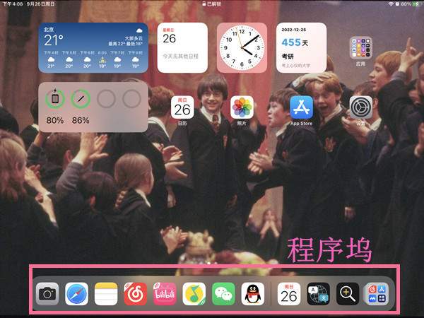 1、打开需要分屏的应用,从屏幕底部向上轻扫打开程序坞开启分屏,从程序坞中拖动另一个分屏应用至屏幕边缘开启分屏。