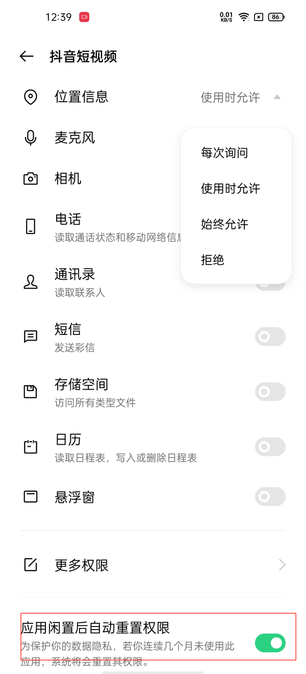 从今年315晚会MIUI12曝光部分APP会私自获取手机和用户隐私后,不少用户都开始注重手机方面的隐私问题,但这毕竟不是自己一个人能解决的,需要厂商跟进。这一次的ColorOS 11在应用权限的管理页面新增“应用闲置后自动重置权限”的开关,使得用户在连续几个月没有使用该应用的情况下,系统将会自动重置该应用的储存空间、位置信息、相机、电话以及麦克风等敏感权限。