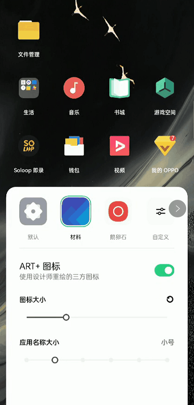其次是界面方面,这是小雷在选购手机时最关注的一点,界面简洁美观度能够直接给用户带来一种良好的观感。ColorOS 11的整体界面偏向清新风格,色彩略偏向于绿色,UI风格则是可以根据自己喜好调节成拟物、扁平或是圆润的风格,图标甚至是文字的大小也能够自行调节。在拖动进度条调整时,用户可以可视化的看到图标的变化,而不管如何调整,都不会在图标中找到任何瑕疵。
