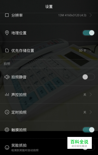 在相机->设置->声控拍照中开启功能,说拍照或茄子可成功拍照