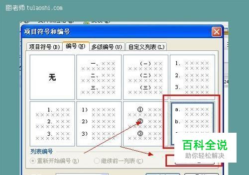 第二步:显示项目符号和编号的选项栏之后,切换到a.b.c.,然后点击自定义。