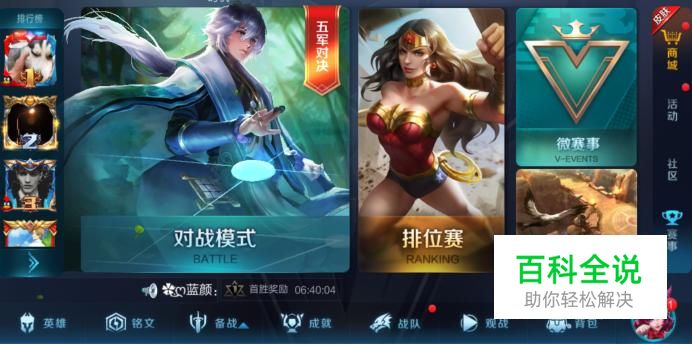 首先,进入游戏主界面,点击左下角“铭文”。