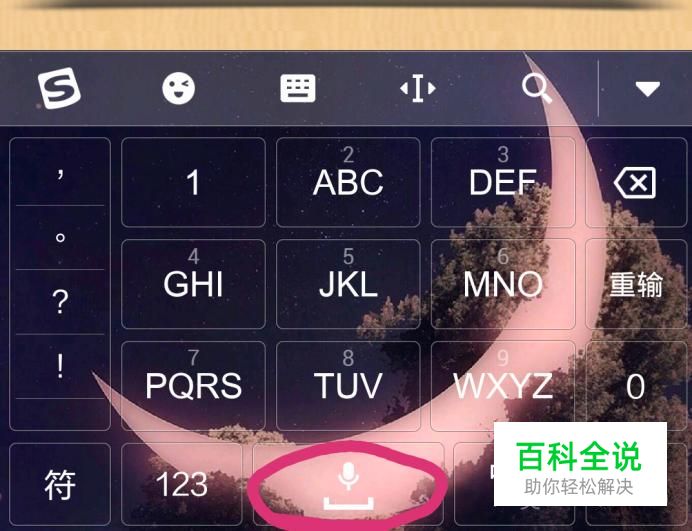 使用搜狗软件的时候,在这个界面上,最下面一行,最中间一个键,就是空格键,长按可以发语音
