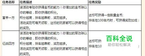 活动任务默认为已接受,通过计算玩家积分来评价任务进度。活动期间,玩家每天完成任务后可到相应界面领取奖励,奖励多少将根据排名而定。活动时间结束时,系统自动关闭任务。